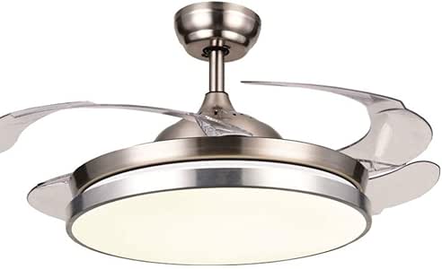 42'' crystal ceiling fan light led dimmable retractable blade lamp 3speed remote.